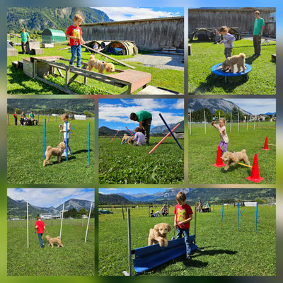 auf rundum eingezäuntem Platz können die Welpen im Spiel ihre Sozialkompetenz stärken
