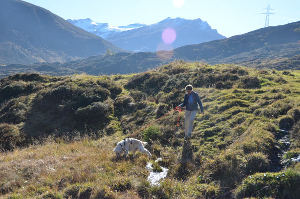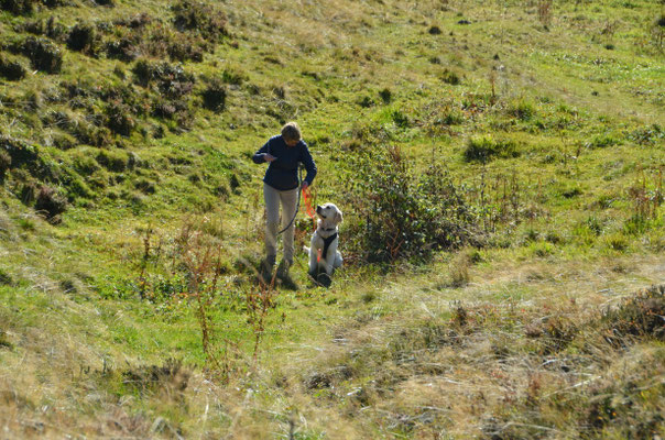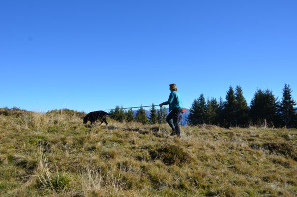 Rückrufübungen und entspanntes an der Leine Gehen sind weitere Inhalte